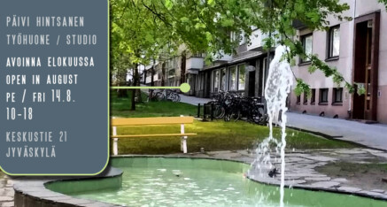 My studio open about once a month and also by agreement. If you wish to visit my studio in other times, please email me and let’s set the date:paivi.hintsanen(a)coloria.net