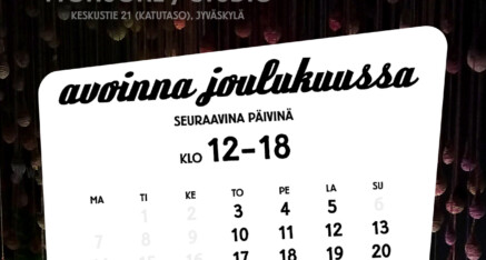 Työhuoneeni on avoinna joulukuussa 2021 useina päivinä klo 12-18: