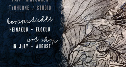 Täältä on hyvä käydä ostamassa lahjat ja kortit kesän juhlijoille, kesälomatuliaiset, kyläilyviemiset ja itseäänkin sopii taiteella hemmotella! Saa tulla useamminkin ja ihan muuten vain – käy vaikka katsomassa alati vaihtuvaa työhuonenäyttelyä.